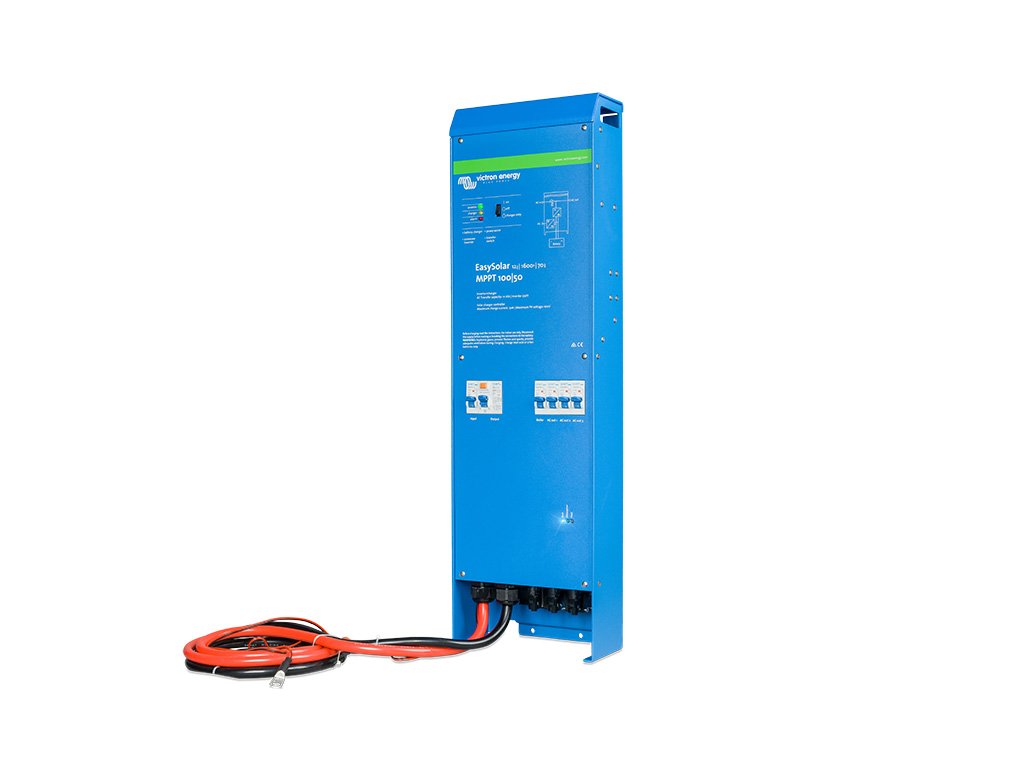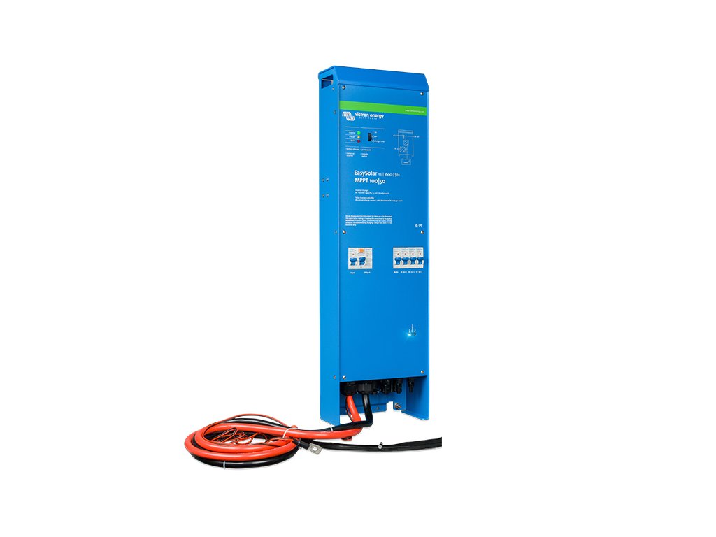 Zařízení EasySolar zahrnuje v jednom kompaktním zařízení: měnič, nabíječku, solární MPPT regulátor a rozvody střídavého (AC) proudu.