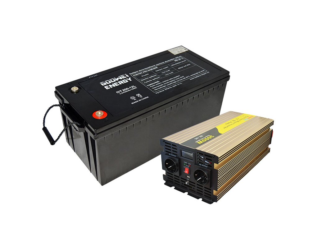 Set trakční baterie GOOWEI ENERGY OTL200-12 (200Ah) + měnič ROGERELE REP3000-12 (3000W), 12V
