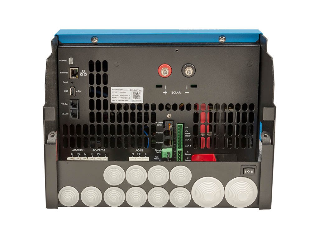 Kromě kvalitního výkonného měniče napětí s čistou sinusovkou kombinuje funkce adaptivního nabíjení, hybridní technologie PowerAssist, ultrarychlého přepínače zdroje napájení - UPS, solárního regulátoru Smart Solar MPPT, Wi-Fi a dalších technologií pro možnost vytvoření sofistikovaného hybridního solárního systému na míru.