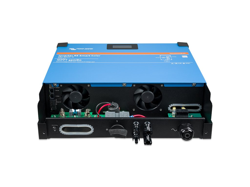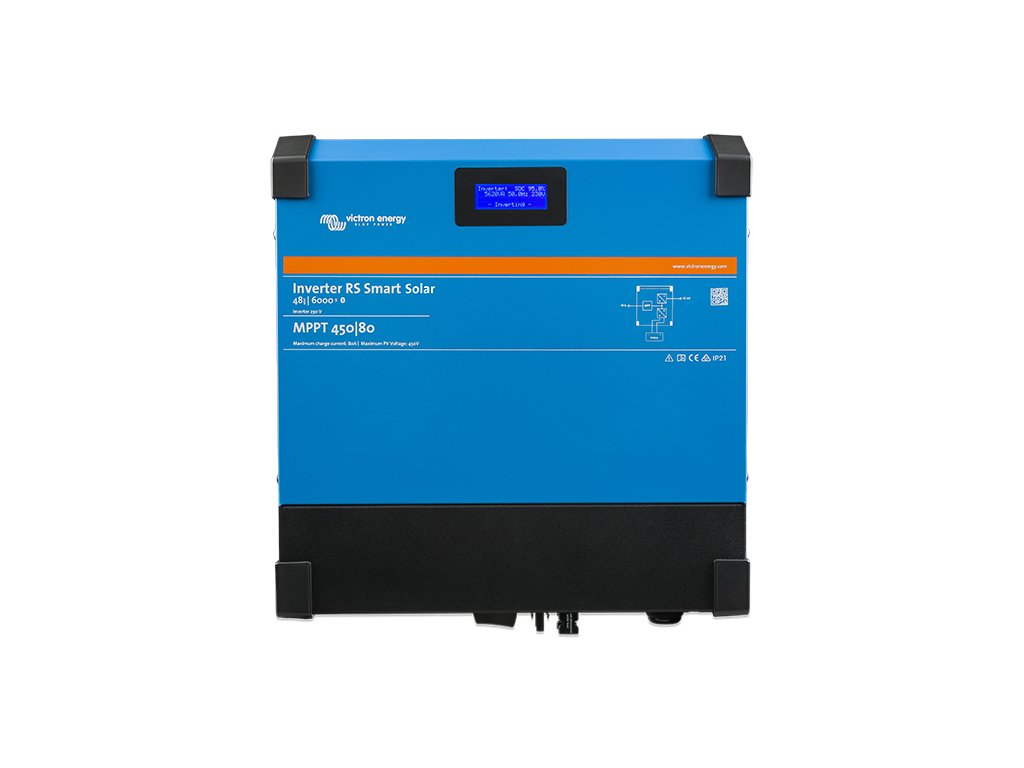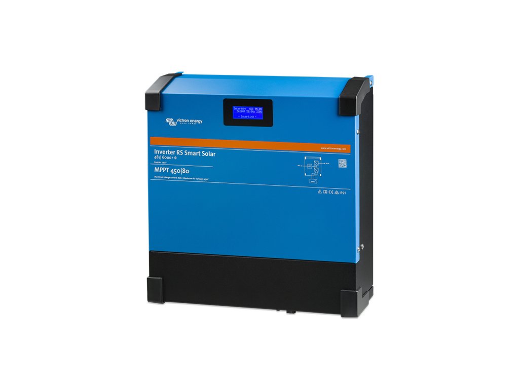 RS Smart Solar je kombinací výkonného měniče napětí 48 VDC, 6 kVA 230 VAC a vysokonapěťového solárního regulátoru MPPT 450V/80A, který je vhodný pro ostrovní systémy (bez AC vstupu pro distribuční síť, nebo generátor). Díky využití moderní elektroniky a vysokofrekvenční technologii váží měnič pouze 11 kg a má vynikající účinnost, nízkou vlastní spotřebu a velmi tichý provoz.