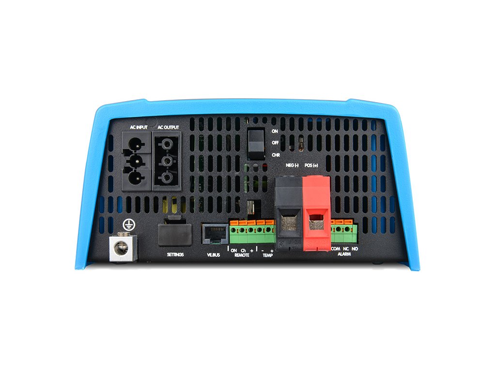 Měnič disponuje jedním AC vstupem (rozvodná síť, generátor) a jedním AC výstupem. Dokud dodává energii externí zdroj, jsou z něho napájeny spotřebiče napojené na výstup a zároveň MultiPlus nabíjí připojenou baterii. Jakmile ale dojde k přerušení dodávky energie, napájení přepne během 20 milisekund na baterie, takže přístroje připojené na výstup běží bez přerušení. V případě využití solárních panelů pak může čerpat energii i ze solárního regulátoru.
