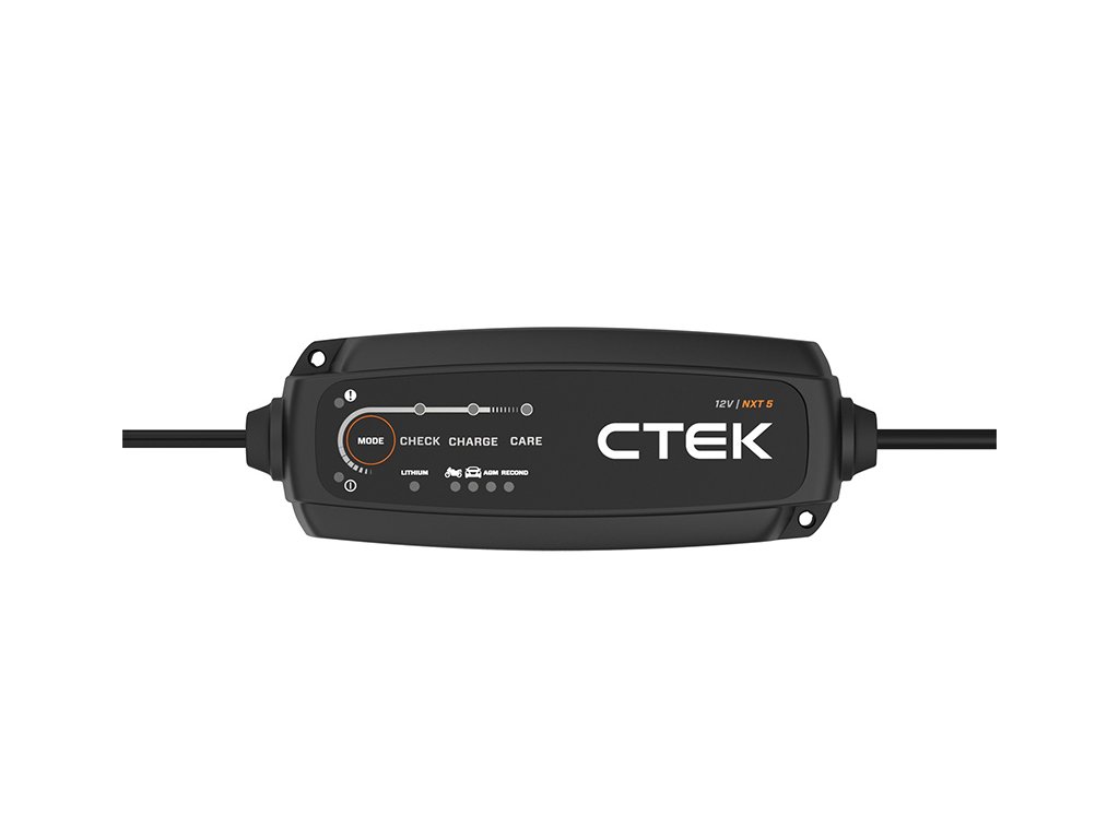 Moderní plně automatická nabíječka CTEK NXT5 s nejvyšším nabíjecím proudem až 5A určená pro 12V olověné a lithiové baterie s kapacitou až 110Ah (v udržovacím režimu až 160Ah).