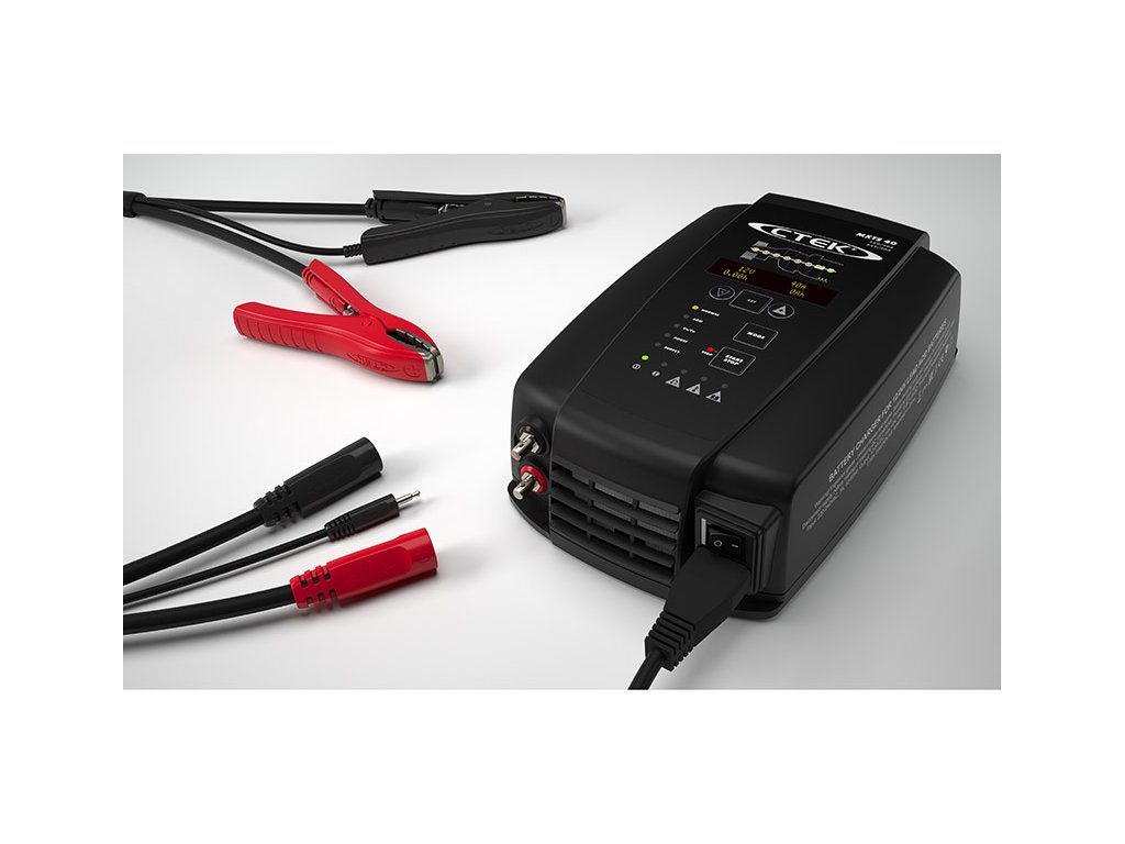 CTEK MXTS 40 je profesionální nabíječka. Jedná se o automatickou nabíječku, která je určená pro 12 V a 24V akumulátory. Max. dobíjecí proud 40A/12V a 20A/24V. Lze jí použít pro baterie o kapacitě 20-1200 Ah (12V) a 10-600 Ah (24V). Je vhodná pro autoservisy či automobilové showroomy. Použití je maximálně intuitivní a bezpečné. CTEK MXTS 40 zaručuje absolutní ochranu veškerého elektronického vybavení ve vozidlech.