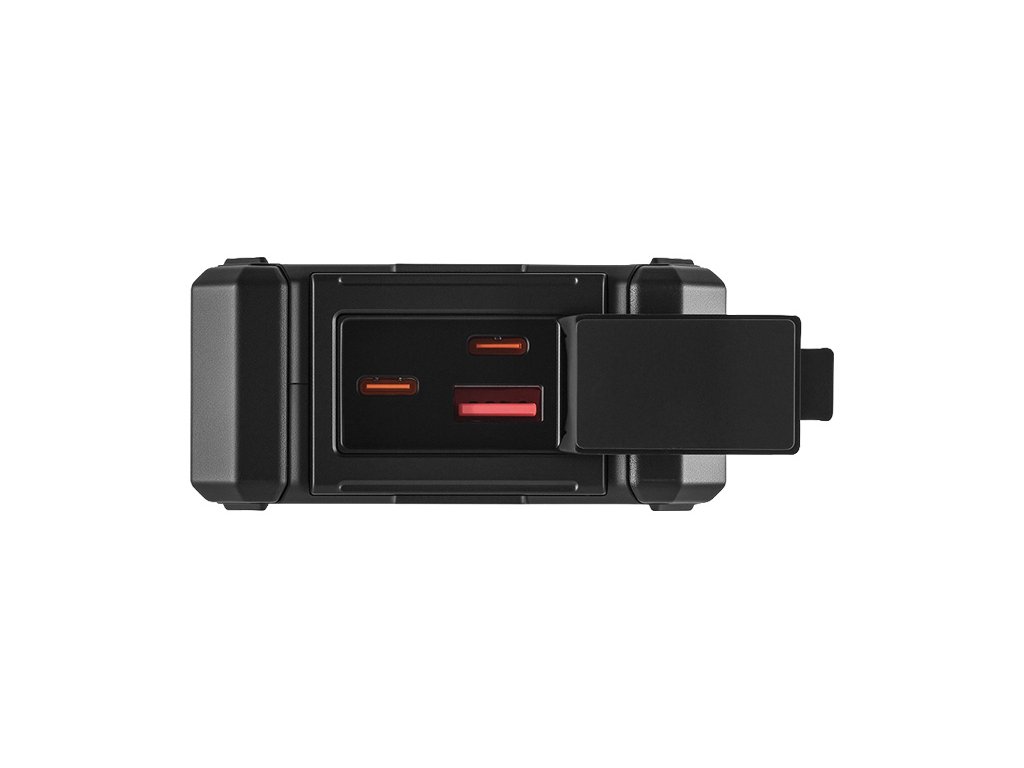 Kapacita 20000mAh (74Wh) znamená energii pro nabíjení mobilního telefonu, GPS a dalších zařízení (porty USB-A a USB-C). Výhodou je možnost nabíjení powerbanky jak z běžné elektrické sítě (port USB-C), tak ze slunečního svitu, které umožňuje vestavěný solární panel (výkon 1.25W). Nejen po setmění přijde vhod výkonná vestavěná LED svítilna (výkon 200 lumenů), zatímco manipulaci a používání usnadňují textilní poutko a kovová karabina (součástí balení).