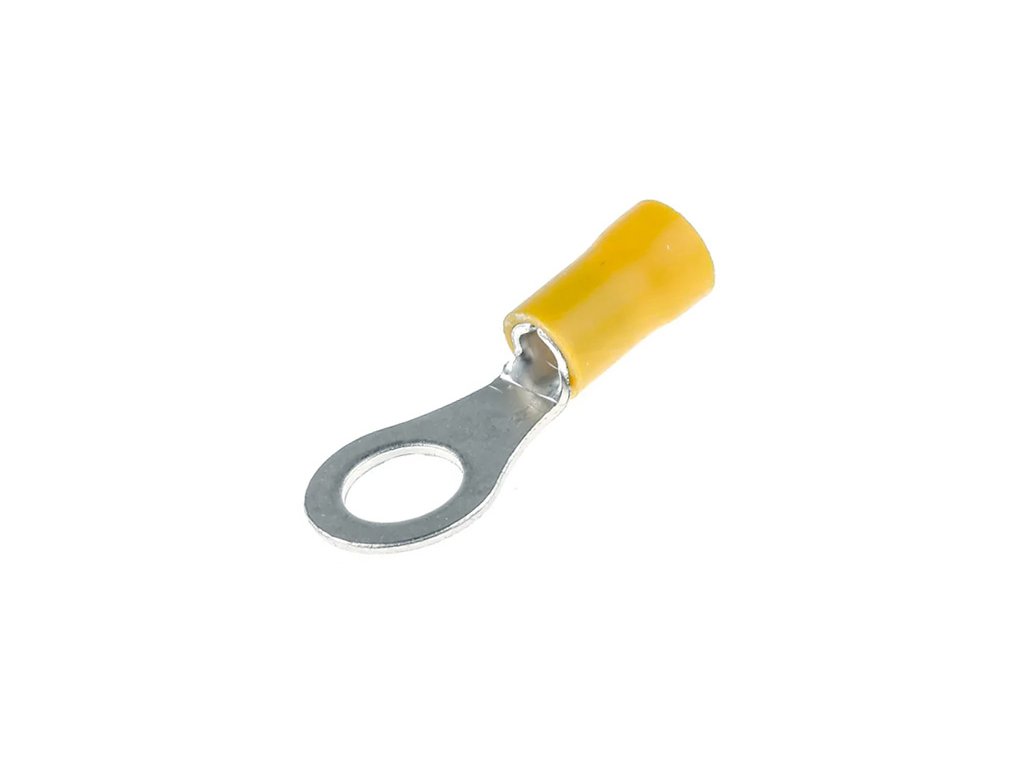 Kabelové oko s PVC izolací pro kabel o průřezu 4-6mm2. Oko je vyrobeno z pocínované mědi a má krátké pouzdro pro nalisování kabelu.
