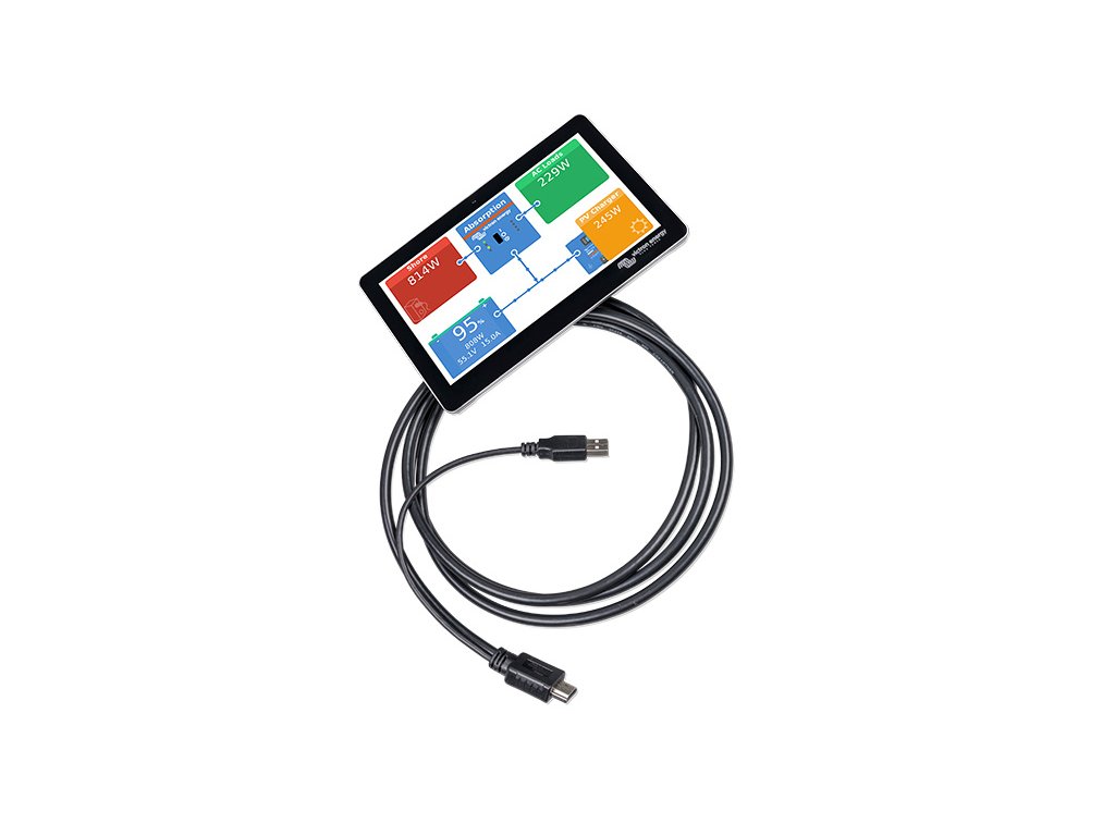 Dotykový displej GX Touch 70 je příslušenství pro Cerbo GX anebo pro Cerbo-S GX. Sedmipalcový dotykový displej poskytuje okamžitý přehled o Vašem systému a umožňuje rychle upravit nastavení. Je jednoduše připojený k Cerbo GX (anebo k Cerbo-S GX) pomocí jediného kabelu. Velmi tenký vodotěsný design, nastavení nahoře a jednoduchá instalace přinášejí velkou flexibilitu.