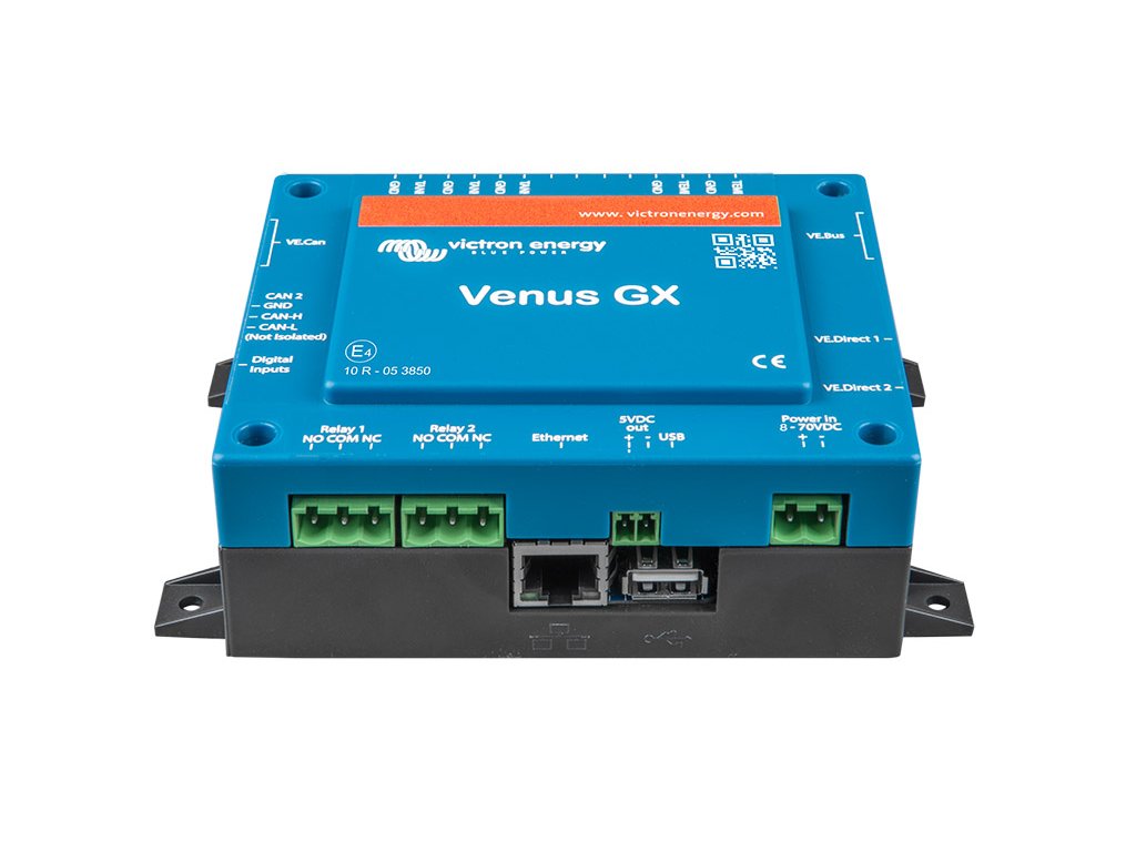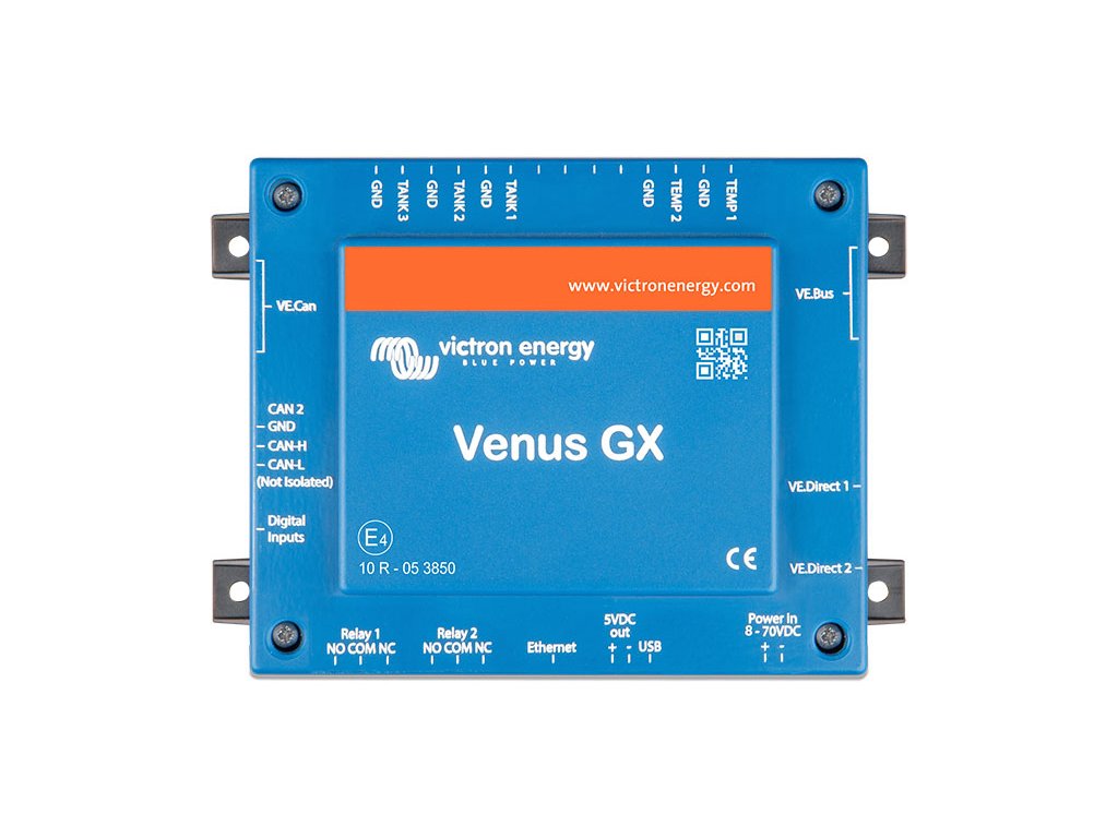 Venus GX Vám umožňuje česky komunikovat se všemi součástmi Vašeho systému a zajistí, aby dokonale fungovaly. Sledujte živá data, provádějte změny nastavení, aktualizujte pomocí smartphonu nebo PC přes volně přístupný portál VRM.