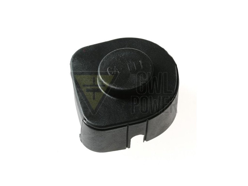 Plastový kryt pólů bateriových článků. Měkčený plastový materiál.