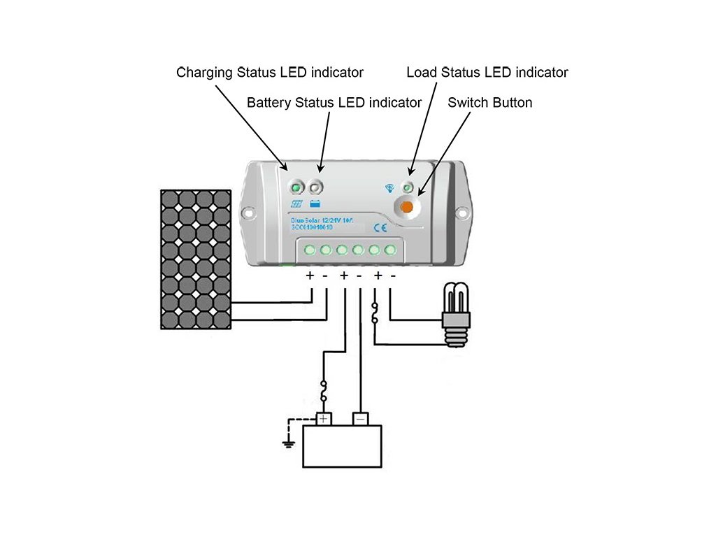 • Ochrana proti přepólování připojení solárních panelů a baterie