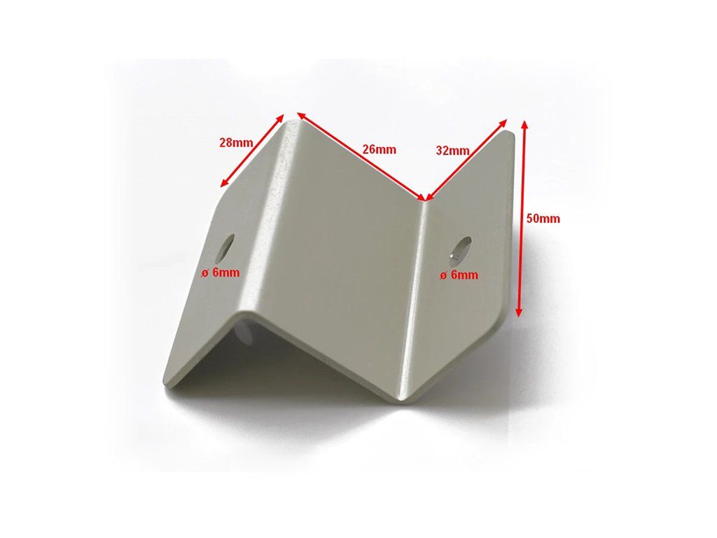 Jednoduché řešení pro uchycení solárního panelu k podkladu. Držák vytvoří svou výškou 26mm mezeru mezi podkladem a solárním panelem nutnou pro provětrávání – chlazení panelu.