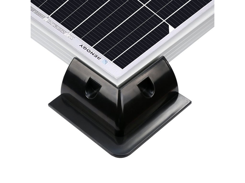 Tuto sadu lehkých konzol lze použít s téměř jakýmikoli solárním panelem s hliníkovým rámem. Zajišťuje rychlé a bezpečné uchycení na plochých podkladech. Držák poskytuje optimální mezeru mezi solárním panelem a podkladem. Ta vytváří vzduchovou mezeru a zajišťuje, že váš panel bude dobře chlazen i při vysokých teplotách (s rostoucí teplotou solárního panelu klesá jeho výkon).