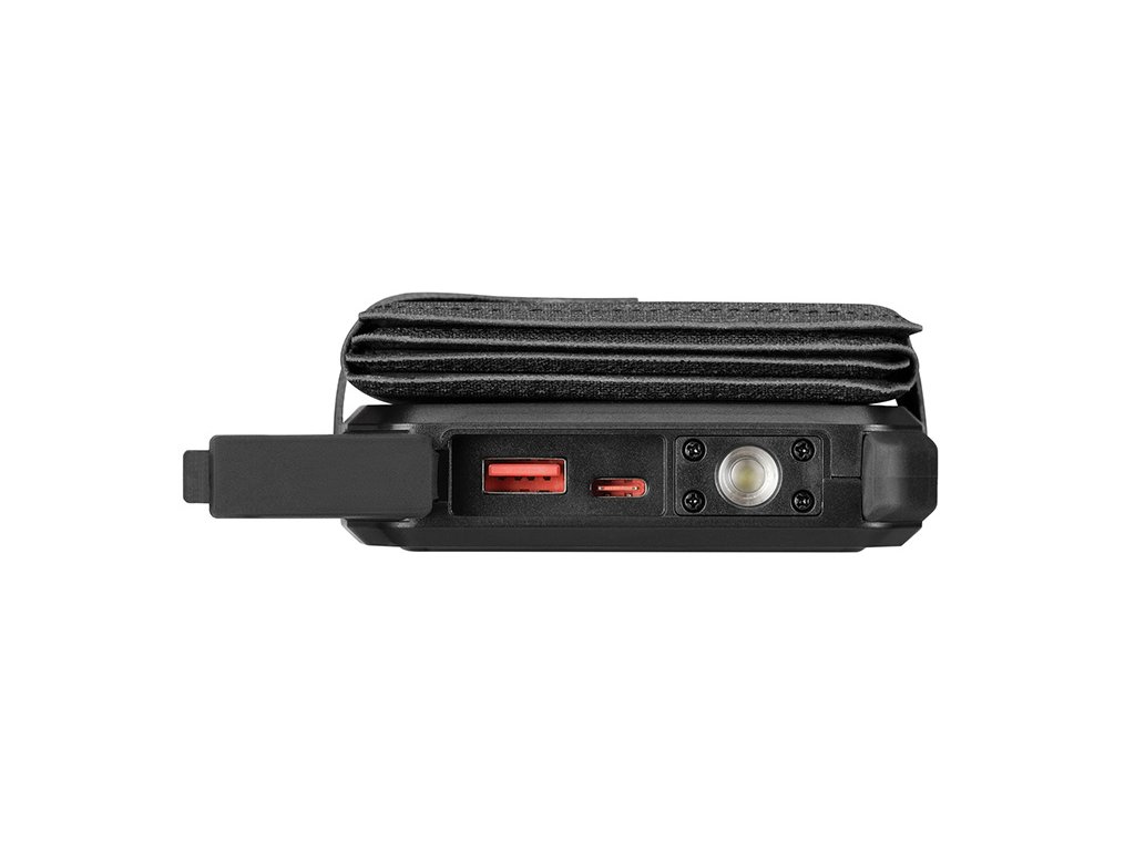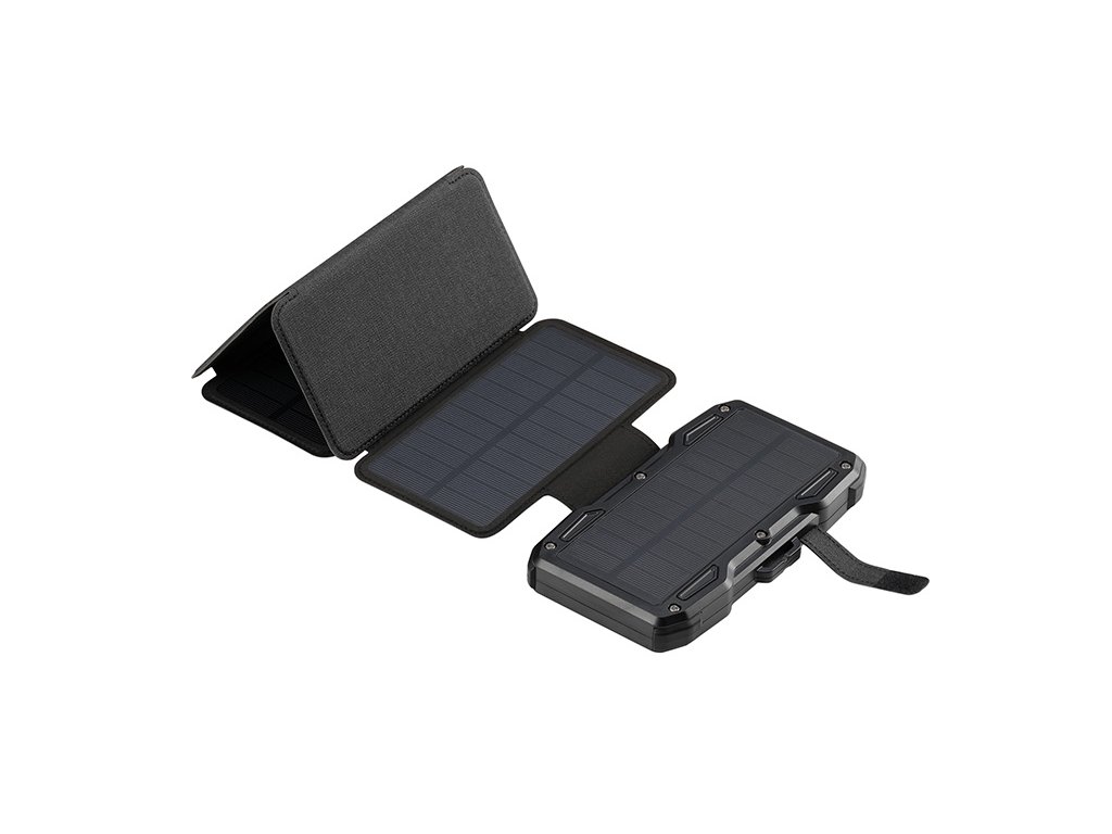 Sandberg solární powerbanka 5-panelů 421-05 10000mAh 37Wh je outdoorová, přenosná, kvalitní a kompaktní. Je kombinací výkonné powerbanky o kapacitě 10000mAh a 5 solárních panelů o výkonu 8W. Powerbanku je možné dobít ze sluneční energie. Po složení má kompaktní rozměry pouze 17,2 x 9,8 x 4,1 cm a hmotnost pouhých 550 gramů. Díky tomu zabere v cestovním zavazadle málo místa. O stavu nabití baterie informuje LCD display. Součástí je LED světlo se 3 variantami osvětlení. Powerbanka je odolná proti prachu a vlhkosti, chráněna krytím IP54.