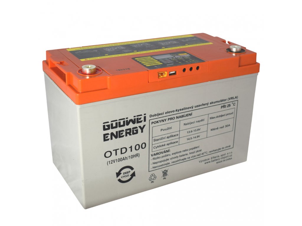 GOOWEI ENERGY řada OTD-DEEP CYCLE představuje novou generaci trakčních akumulátorů jako nezávislý zdroj energie pro Vaše spotřebiče! Ideální všude tam, kde není k dispozici stálý zdroj energie. Na chatách a chalupách, v karavanech či obytných vozech, na lodích i na houseboatu nebo třeba na dlouhé kempování. Velmi vhodné jsou však i jako zdroj energie pro elektromotory. U GOOWEI ENERGY řady OTD-DEEP CYCLE totiž budete mít vždy energii akumulátoru pod kontrolou! Akumulátor je vybaven displejem, který se na 30s aktivuje stisknutím tlačítka a zobrazí Vám aktuální napětí baterie a orientační informaci o zbytkové kapacitě. Systém dále disponuje funkcemi, které upozorňují na hluboké vybití akumulátoru a na nutnost jeho dobití. Upozorněni budete rovněž na abnormálně vysokou teplotu akumulátoru nebo na vysoké nabíjecí napětí. Respektováním kontrolních funkcí systému můžete výrazně přispět k dosažení optimální životnosti akumulátoru.