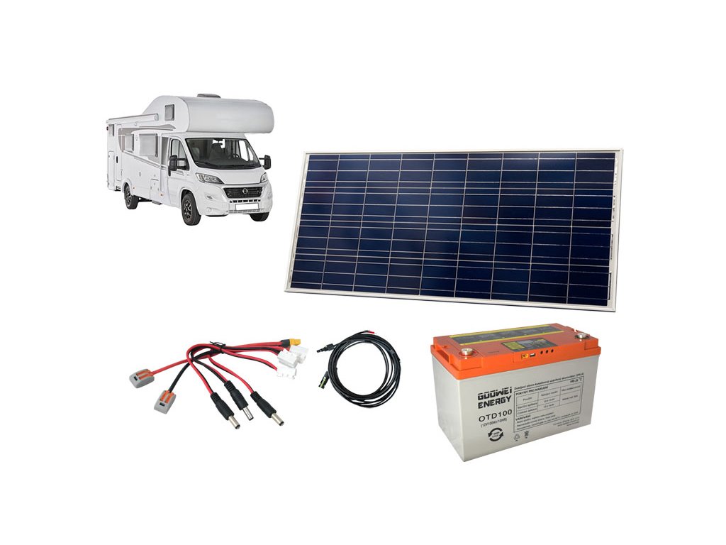 Solární sestava pro karavan 130Wp + baterie Goowei 100Ah