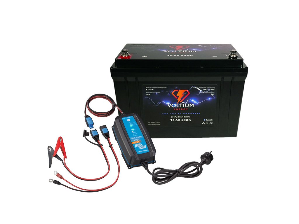 Set lithiové baterie Voltium VE-SPBT-2450 (50Ah) + nabíječka Victron Blue Smart (5A), 24V