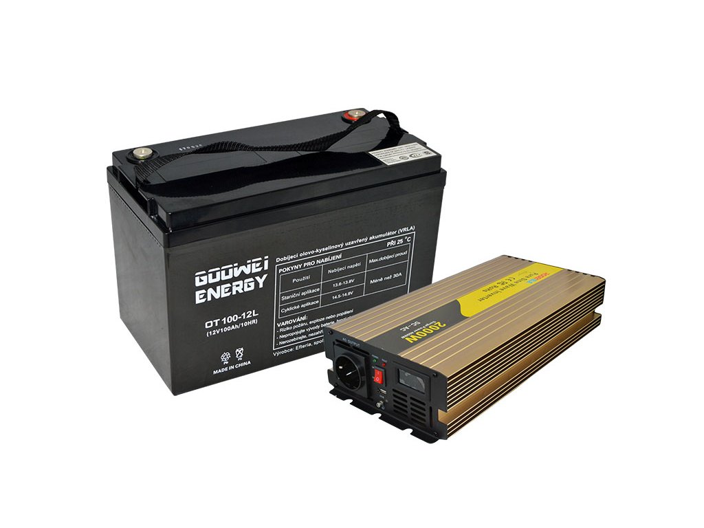 Set trakční baterie GOOWEI ENERGY OTL100-12 (100Ah) + měnič ROGERELE REP2000-12 (2000W), 12V