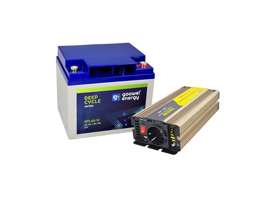 Set trakční baterie GOOWEI ENERGY OTL45-12 (45Ah) + měnič ROGERELE REP500-12 (500W), 12V