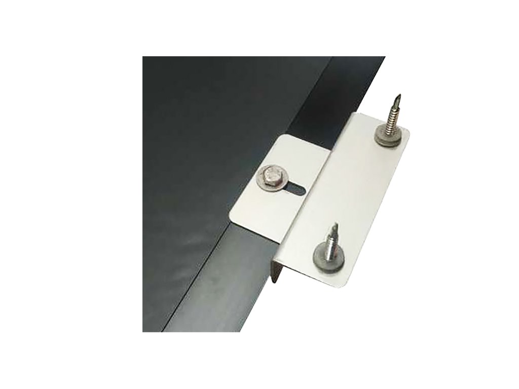 Sada pro uchycení solárního panelu k pevnému podkladu je vhodná pro solární panely s hliníkovým rámem šířky 20-50 mm. Solární panely většinou mají otvory pro uchycení již z výroby.