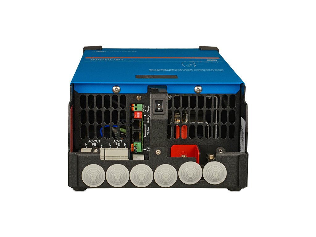 Měnič disponuje jedním AC vstupem (rozvodná síť, generátor) a jedním AC výstupem. Dokud dodává energii externí zdroj, jsou z něho napájeny spotřebiče napojené na výstup a zároveň MultiPlus nabíjí připojenou baterii. Jakmile ale dojde k přerušení dodávky energie, napájení přepne během 20 milisekund na baterie, takže přístroje připojené na výstup běží bez přerušení. V případě využití solárních panelů pak může čerpat energii i ze solárního regulátoru.