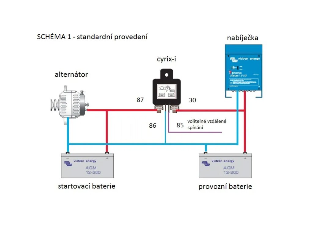 Inteligentní propojovač baterií Cyrix-ct řídí nabíjení a odpojování startovací a provozní baterie. Pokud je na jedné z baterií dosaženo napětí 13,0 V (26 V) po dobu 10 minut nebo 13,8 V (27,6 V) po dobu 4 sekund, Cyrix-ct baterie propojí a dochází k nabíjení obou baterií současně do plného stavu. Jakmile na jedné z baterií klesne napětí pod 12,8 V (25, 6) po dobu 10 minut nebo 11,8 (23,6) po dobu 4 sekund, dojde k vzájemnému odpojení baterií. Toto propojování a odpojování funguje obousměrně. Baterie mohou být odlišných kapacit, typů a konstrukcí. Předpokládá se, že každá baterie napájí své vlastní spotřebiče.